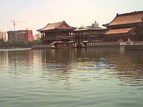 Tian-an-men Square runs between Mao's mausoleum (on the