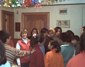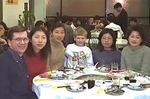 50-75 friends (many from English Corner) crammed into our 2001 Christmas "Drop In!" |